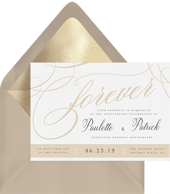 And these anniversary card invites ensure they’re right there with you, toasting to your “we still do” and your lives together. We’ve recommended invitations for different milestones, but each of these anniversary invites can be customized to match your stage of marriage.
