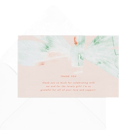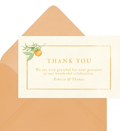 Decide whether you’re going to send handwritten cards or use digital invitations to express your gratitude. (We can’t deny going the digital route is much faster, more affordable, and convenient — no shopping, no stamps, no post office runs!)