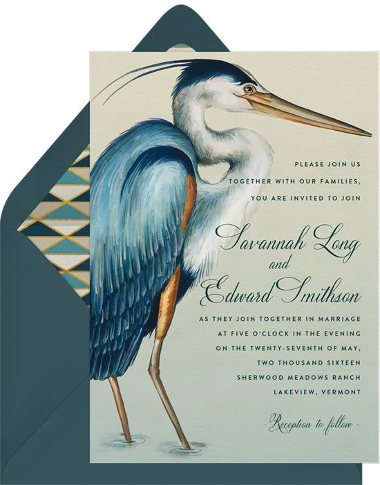 The right beach wedding invitation practically makes the air feel salty. Realistic drawings and impressionistic watercolors leave a big impression. Or go for classic nautical stripes and get ready to sail into your future. Whatever you choose, be clear in your invitation wording. Especially for destination weddings, make sure guests know where they should stay. Send save the dates early, and guests will be ready to seas the day with your final invitation. See you on the beach!