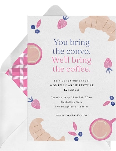 While this invitation might be presented as an adult get-together, it’s easy to make a few changes to turn this into a sweet berry birthday invitation. It’s perfect for a more casual brunch gathering to celebrate the baby girl or boy.