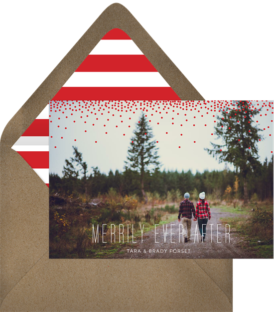 Whether you’re sending your Christmas card greetings to family members, coworkers, or friends from college, Greenvelope is here to share your holiday message. Choose from dozens upon dozens of holiday designs, all of which can be customized. Personalize your Christmas card with a photo of you or your family, add a fun note or a life update for a personal touch, or type a simple “Merry Christmas and Happy New Year!”