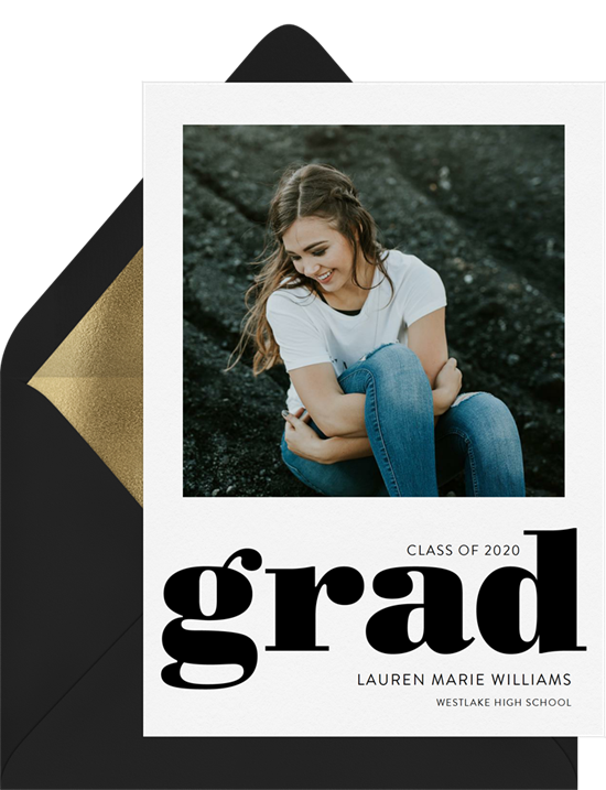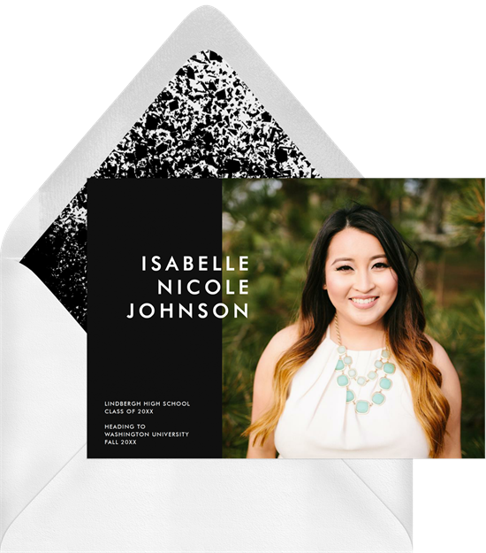 To celebrate your first #adulting step into the real world, send out this classic, black and white graduation card for your party. It kind of makes you start envisioning your first business card, doesn’t it?
