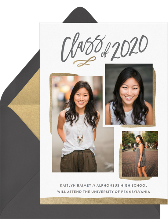 If you thought picking a major was hard, just try to pick an invite from this collection of beautiful designs. With gold foil graduation announcements, watercolor lettering, and designs customized to your school colors, you’re sure to find the perfect college graduation announcement to send out.
