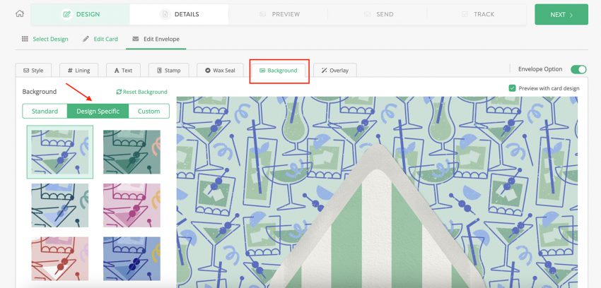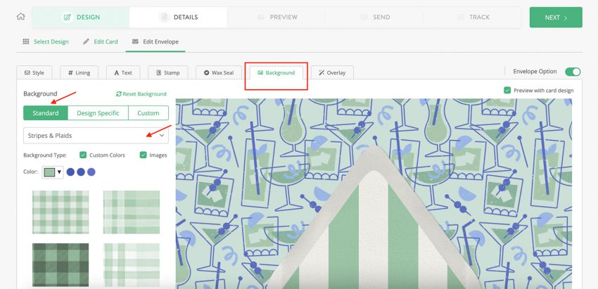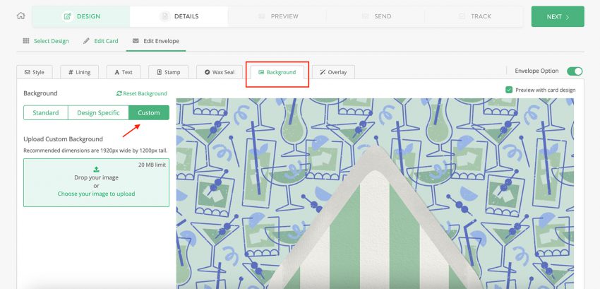 Already have a pattern, texture, or image that you’d like as the backdrop for your Greenvelope mailing? Good news: you can easily upload it as your background!