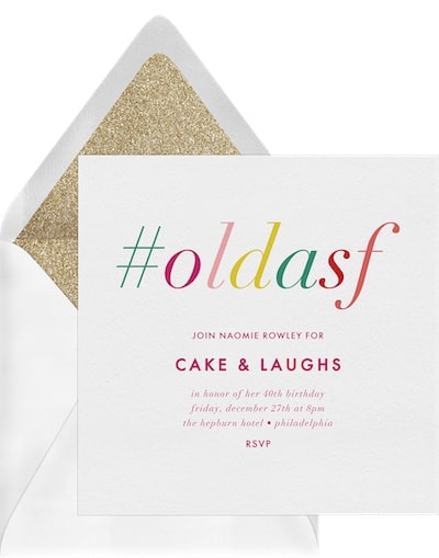 Is the birthday honoree hip and on top of the latest trends? This humorous invite is the perfect way to celebrate their big day without being too serious. Lean into the humor by customizing the phrasing with something like, “Join the birthday girl in honor of her 29,200 days on Earth!”