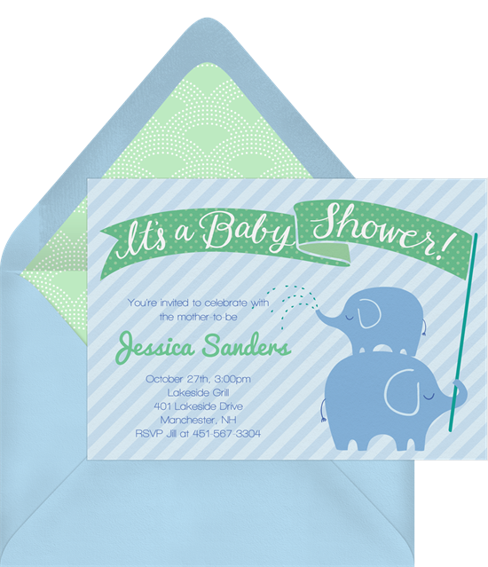 With Greenvelope, you don’t need to add mailing invitations or chasing RSVPs to your list. Save trees and time with one of our adorable, digital baby shower invitations. Guests will receive their invite instantly, and with RSVP tracking, it’s easy to stay on top of organizing your guest list. With all that time saved, you’ll be able to put it straight back into planning the sweetest elephant-themed baby shower party.