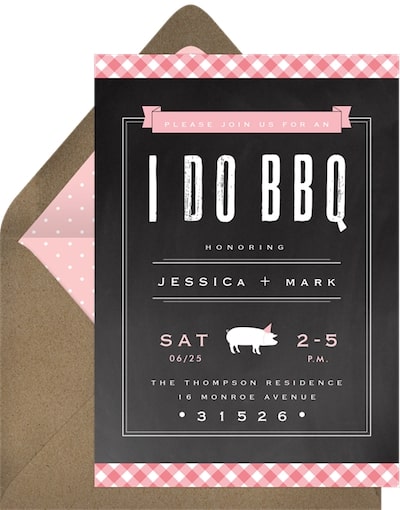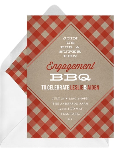 A backyard barbecue is the perfect way for laid-back couples to celebrate in the warmer months. To mark the occasion, choose a summery invite decorated with barbecue classics like trendy gingham and summery florals.