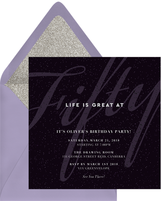 From luxe, black-tie-only invites to spunky, surprise birthday invitations, you’re sure to find an invite to match your vision. And while we certainly dialed into the “fifty” theme in this collection, remember that any birthday invitation from Greenvelope can be customized for your gathering.