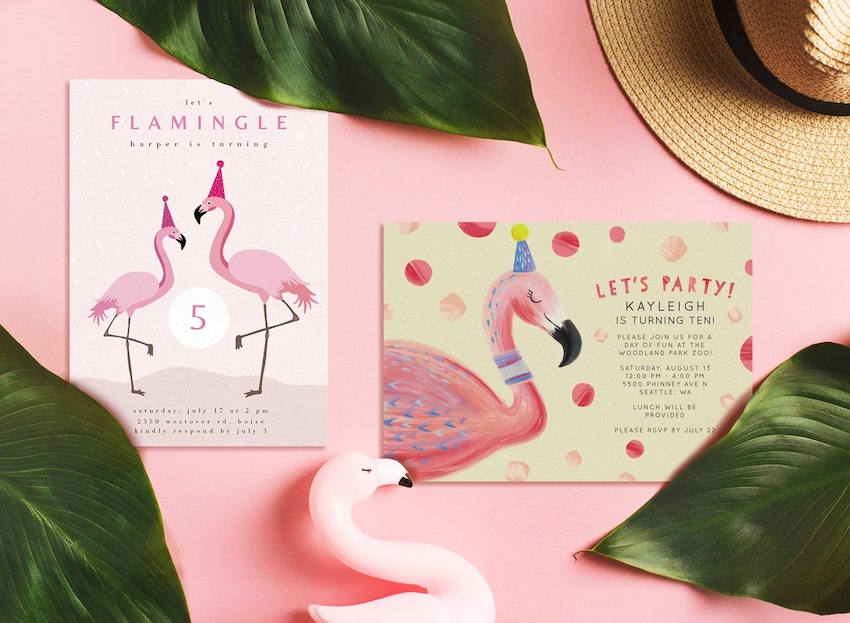 When it’s time to get those invites out, choose one of our flamingo birthday party invites. Each one can be customized so you can transform it into a completely personalized design that’s just as unique as your special moment.