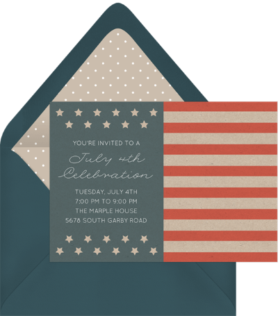This muted invitation design is a great way to honor the sacrifices and lives lost during the founding of our country and the years since. It’s suited for more somber celebrations or official Fourth of July events.