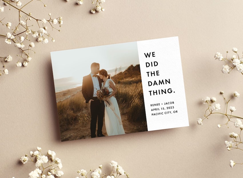 If you decided to skip the save the dates and got hitched without all the hoopla of typical wedding plans, then these funny elopement announcement ideas are just what you need to share the news of your big day with loved ones.