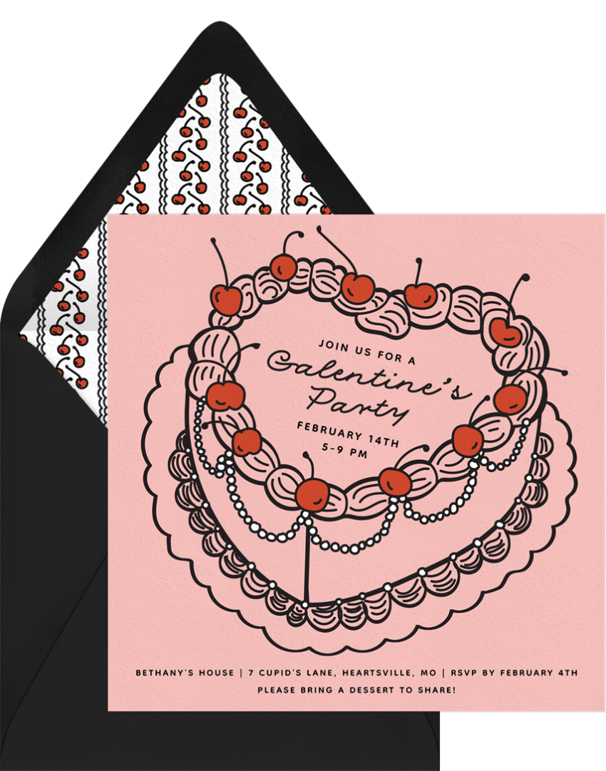 ‘Doodle Heart Cake’ Galentine’s Party Invitation