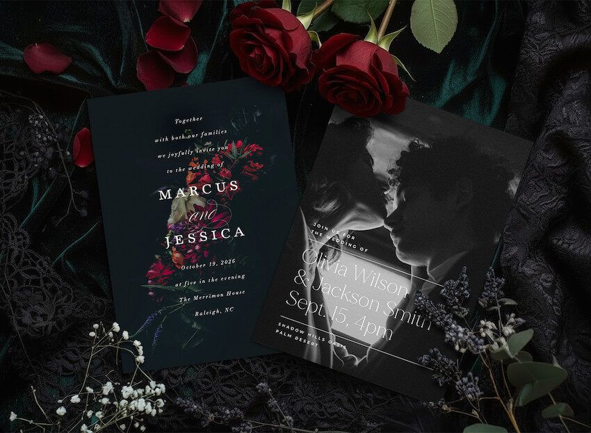 For a celebration like yours, only the best wedding invitations will do. That’s why we’ve made it easy for you to create and customize your own dark and romantic wedding invitations. Explore our collection of gothic wedding invites to find the perfect match for your dream day.