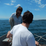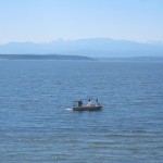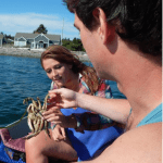 Saturday morning the team divided into two cars and drove through Deception Pass on the way to a cabin on Whidbey Island. It was one of the hottest days in Seattle, but the team barely felt the heat thanks to the breeze from Penn Cove. As Michelle, Sam, and Lauren prepared some fresh fruit, smoked salmon, and cheese, Olivia and the tech guys took in the magnificent view, while Cliff led Noni in a meditation session. At some point Sam brought out the bait cages and fish heads for crabbing. Â Lauren and Preston volunteered to be his first crew for setting the bait. They soon discovered that Sam was the only one strong enough to row the boat against the current. As Lauren said to Sam, “We would have been lost at sea without you!”