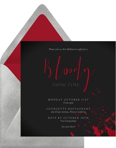 Make the night all about murderous villains by asking guests to dress in costume as a movie character killer. Chucky, Ghostface, and Michael Myers are classic favorites for this horrifying theme. Set the tone for a night of frights with the Crime Scene Invitation featuring blood spatter and spooky hues.