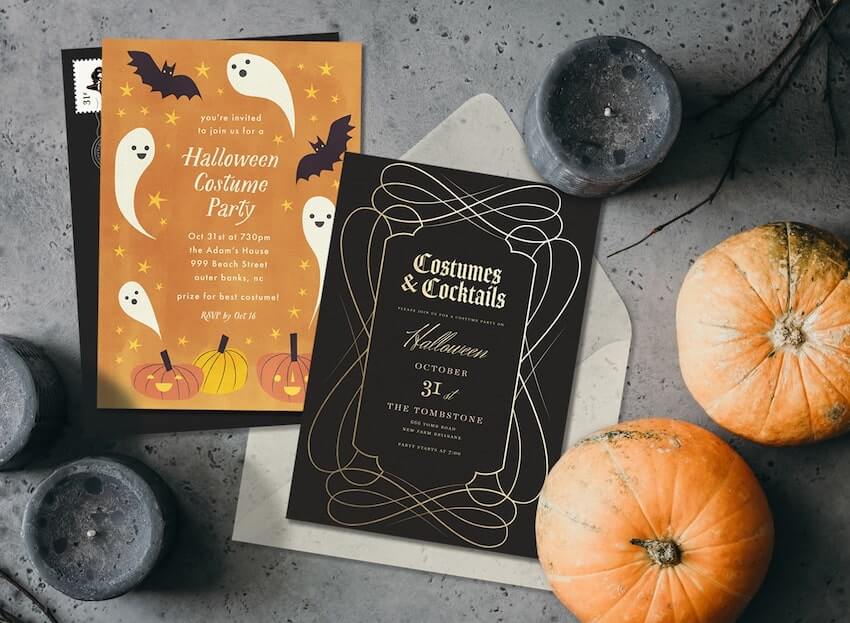 Once you choose a Halloween costume party theme, browse our collection of digital invites to find a design that matches your vibe. Customize the invitation template by playing with the color scheme and adding elements like haunted music. When you’re ready, hit send and the invite goes to all of your guests via email or text. All that’s left to do is count down the days until the big bash!