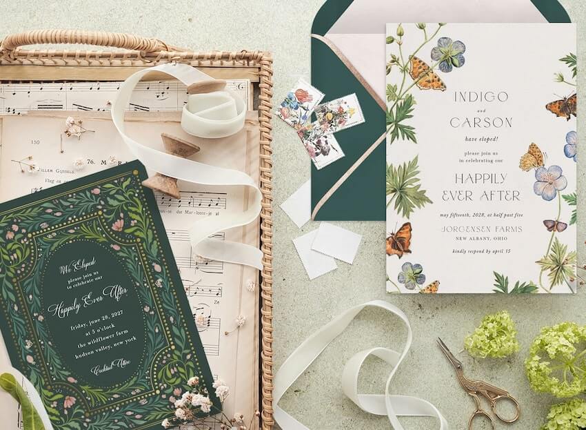 You’ve eloped or had your official wedding ceremony, and now it’s time to ask your loved ones to join you for a celebration of all things love, romance, fairytale, and whimsy. To do this, you’ll need the perfect happily-ever-after party invitations — and we know just how to find them.