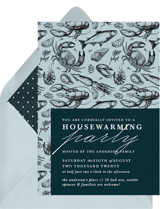 9. For Those Who Love a Seaside Get Together: Seafood Soirée Housewarming Invitations