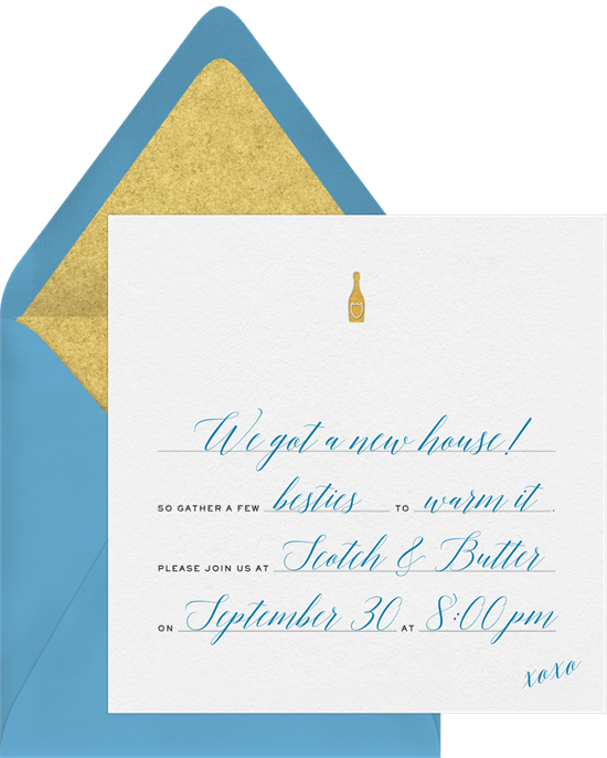 You’re onboard with the neighborhood, and the shell of a condo, flat, house, fill-in-your-property-here is starting to feel like home. And while you haven’t knocked on any doors to say hello yet, you have a few friends you’ll most certainly invite over to scope out your new place. You’ll collectively toast to your new setup, but before you go popping bottles there’s just one thing you have to do: actually invite them over.