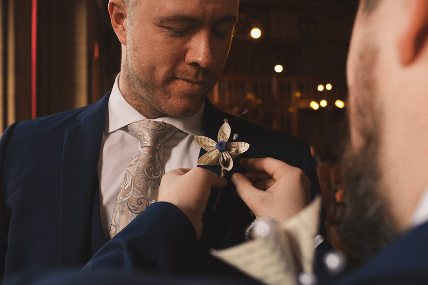 You can also explore a literal approach when incorporating the books into your wedding décor. These stunning bouquets and boutonnieres were made with actual pages from the books.