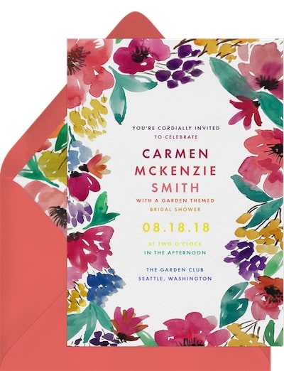 Ready to invite guests to the big event? Greenvelope has dozens of bridal shower invitations, which include options for Jack and Jill coed celebrations. Each one is customizable, giving you the opportunity to make this event even more memorable. Adjust the typography and color palette, and upload photos of the happy couple. Then send it off to everyone on the guest list via text or email with just a few clicks.