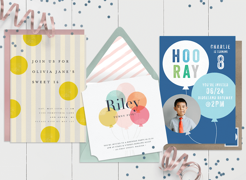Actually, now that we think of it, the most challenging part of the planning process may be narrowing down your design selection. With over 350+ cards to choose from, you’ll have more than enough options for your kid’s birthday bash.