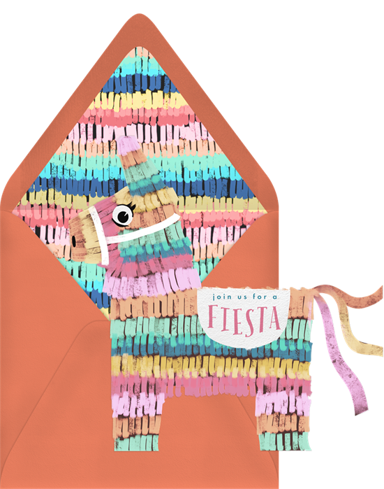 Is someone daydreaming of a fiesta for their birthday? This birthday party invite features bright colors and a fun donkey piñata covered in rainbow stripes. So put on your best party hat, stuff your piñata full of candy (good luck with that by the way), and enjoy this fiesta de cumpleaños.