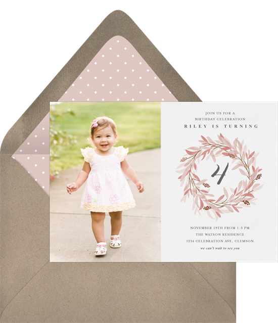 Celebrating ages 2, 3, or 4? No worries! With Greenvelope’s customization tool, you can personalize this invite for the appropriate milestone in just a few clicks.