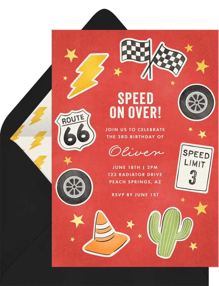 When you’re ready to get the party started, the birthday invitation sets the tone for a day that’s every bit as thrilling as the checkered flag drop.
