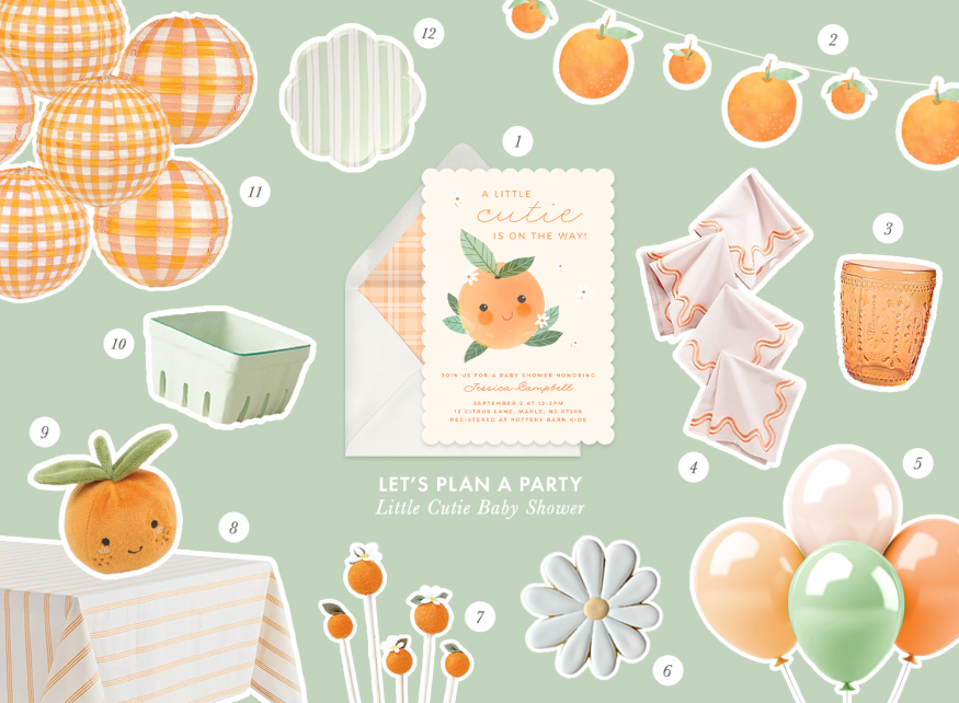 While this citrusy and sweet theme is particularly suited for a spring or summer celebration, the options are endless for customizing it to suit your (or the expecting parents’) style with vibrant decorations, treats, and activities. Today we’ve rounded up a few of our favorite products, tips, and inspiration to help jumpstart your “Little Cutie” baby shower plans.