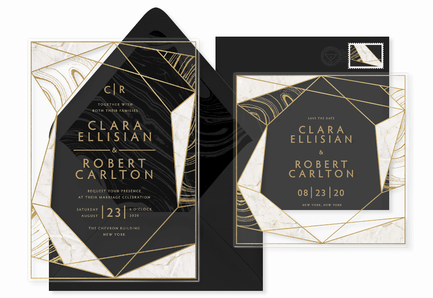 Ideal for couples who love an added touch of modern creativity, non-paper mediums like iridescent acrylic are becoming more and more popular.