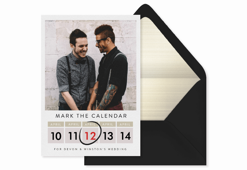 Just circle the date—it’s as simple as that! Both fun and functional, we love the idea of incorporating a calendar into your savee the date design (and your guests will too!)