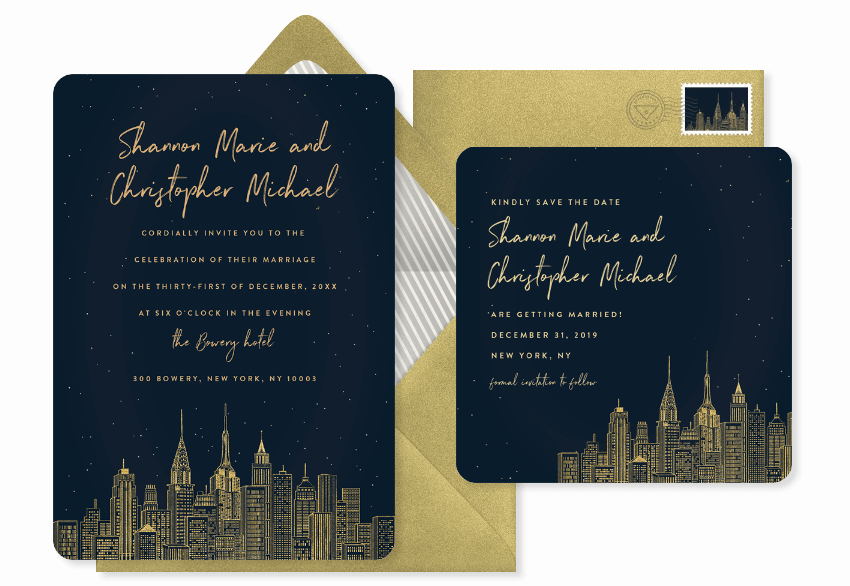 This save the date style is perfect for couples who want to see their hometown (or venue location!) come to life. Whether “home” is best described through rolling countryside hills or a sleek city skyline, opting for a hand-drawn save the date that depicts your hometown’s charm is nothing short of special.