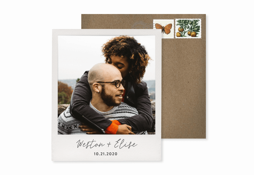 The best thing about a polaroid save the date? The most special part of the design (your personalized photo!) is framed front and center.