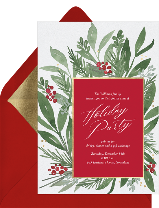 This holiday open house card works well whether you’re sending out Christmas party invitations for a gathering at home or inviting colleagues and clients to an office holiday party. Customize the invitation design with your party details, and send it out to those who made this year memorable.