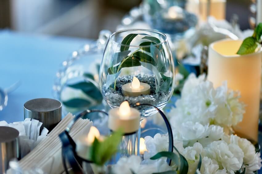 Light up your wedding decor with energy-efficient LED lights and flameless candles. If you love the romance of real candles, consider eco-friendly candles made from pure coconut wax or soy wax to avoid harmful impurities found in most conventional candles.