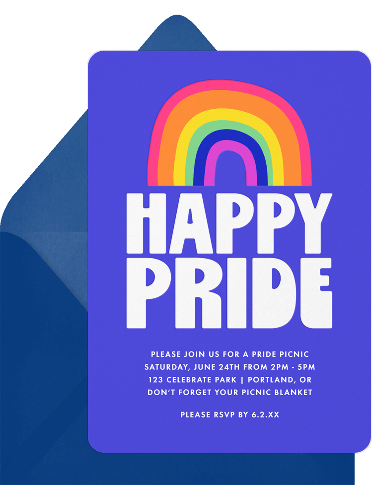 Sure, a perfect tablescape or a balloon arch makes for great photos — but a truly great Pride party is all about the people. Kick things off with a digital invitation that sets the vibe from the start.