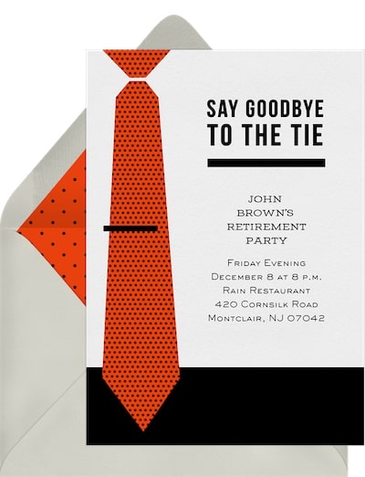 With Greenvelope, you can choose a retirement party design and customize the text with the key details. Be sure to note if it’s a surprise party, whether guests should bring anything, and how they can contribute to a group gift or sign a group card. Also, include RSVP instructions.