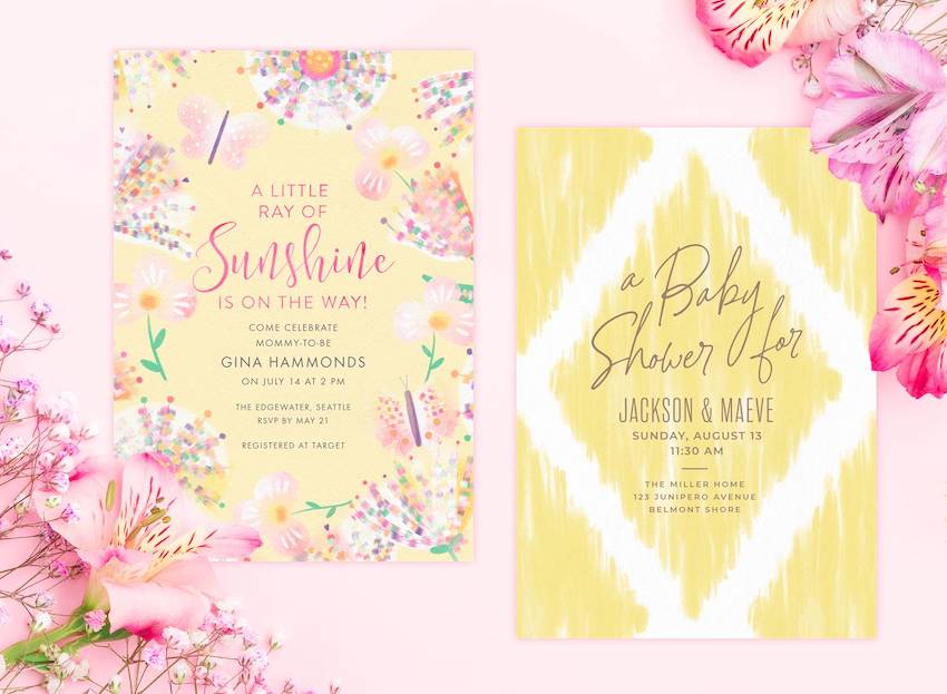 Here, we’ve highlighted some of our favorite summer-inspired baby shower ideas. And to help make the party planning process even easier, we’ve paired each theme with a matching baby shower invitation. Let’s get started!
