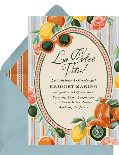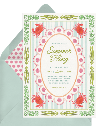 Because invitations are almost always the first impression guests will have of your summer party, you want to make sure to choose a design that reflects your theme and gives your guests a glimpse of what to expect. Digital invitations are often the best option for summer party planners, thanks in large part to just how customizable every design is (seriously, the options are endless).