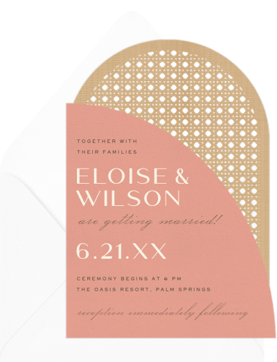 This unique summer invitation design features an organic and textural rattan cane pattern with overlapping shapes in fresh summer colors. A perfect way to set the scene for a memorable garden party, no matter the occasion.