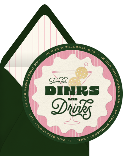 Pickleball is sweeping the nation, and whether you’re a veteran pickler or you’ve spent zero minutes on the court, a Dinks and Drinks tournament is a really fun way to spend a summer day. This fun, vibrant Pickleball invitation design nails the vibe.