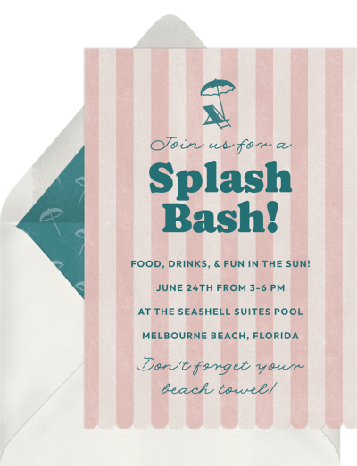 Vintage colors set guests immediately in a specific time and place, but the scalloped die-cut shape at the bottom of this pool party design really make it stand out.