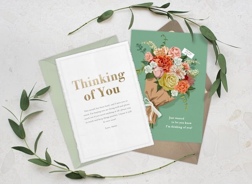 Take the first step by sending a digital greeting card. You can personalize the message and send it to your loved one instantly. You can even attach a sympathy gift, like a gift certificate for food delivery or a voucher for a cleaning service to help anyone who is struggling to find the time and energy to take care of themselves during a time of loss.