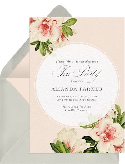 Whether you’re hosting a floral tea party or simply want to add a can’t-miss pattern to your sophisticated get-together, floral napkins are a great idea. Choose a design with a similar feel and color palette to the rest of your tea party decorations. Take inspiration from flowers for your invites too, like this charming Blush Azaleas invitation.
