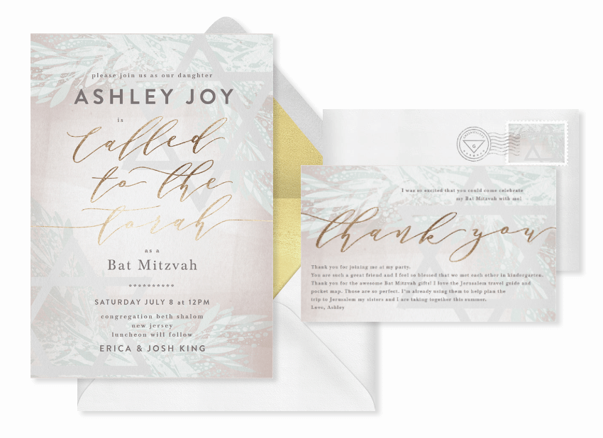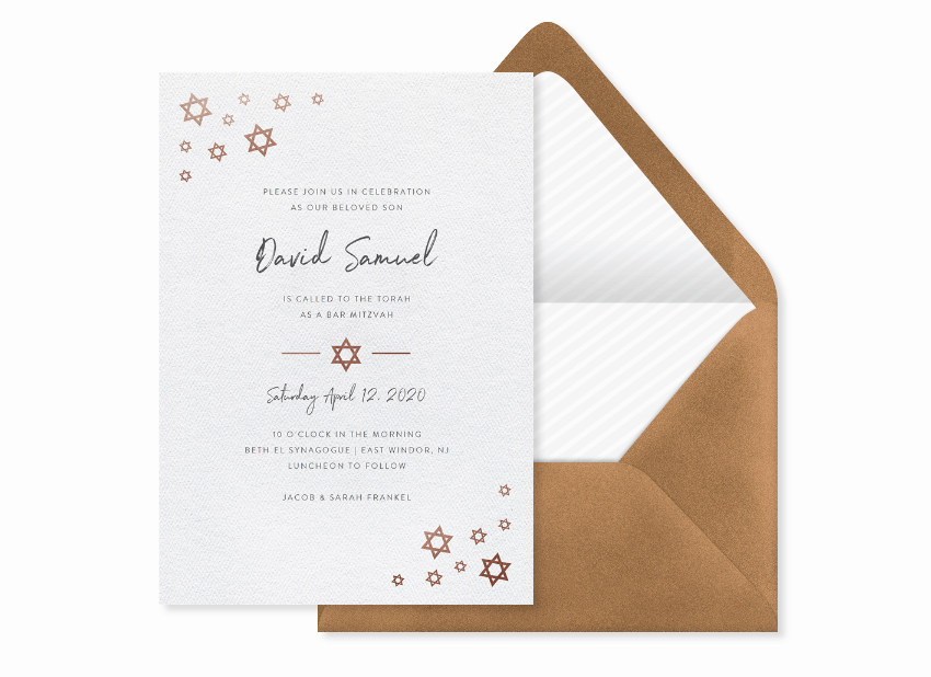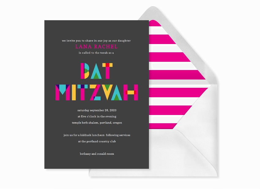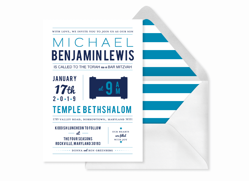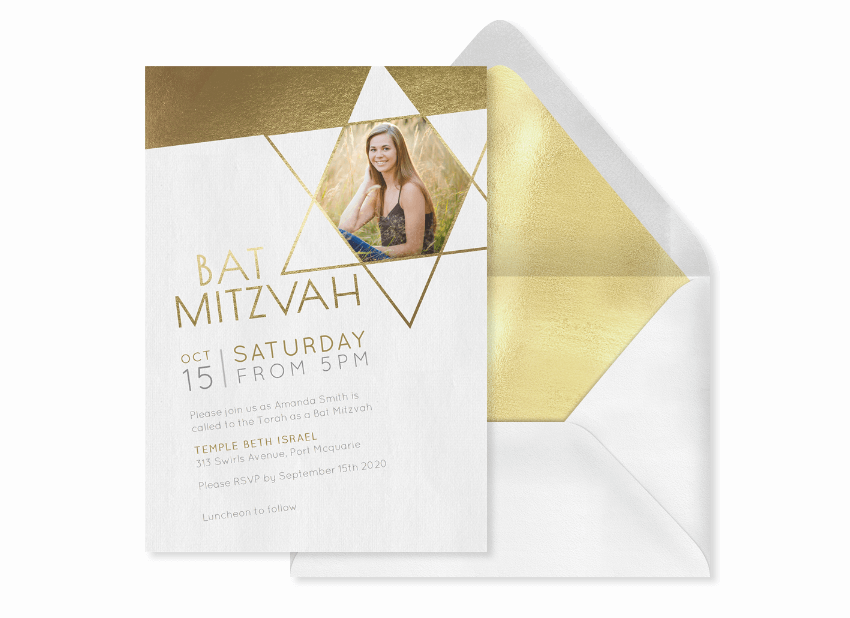 Make your child’s mitzvah ceremony special and memorable—starting with the invitation! Greenvelope has a variety of stylish and popular invitations, perfect for any coming-of-age celebration. From classic and traditional to chic and modern, keep scrolling for 12 of our most popular bar and bat mitzvah invitations.