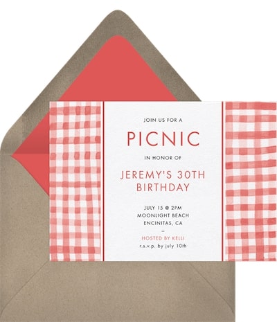 Decide how you want your picnic to feel, then plan your digital invitations, menu, seating, and location to match. Host a birthday picnic in your backyard, by the river, at the beach, or anywhere scenic. (How about an aesthetic picnic for some social-worthy snaps?)