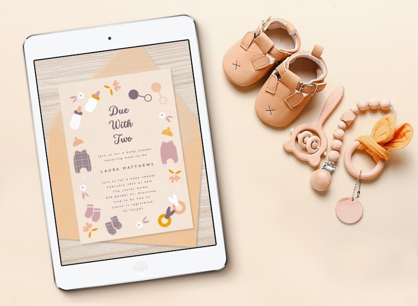 With all of these twin baby shower ideas, you’ll surely find a theme to suit your celebration. At Greenvelope, it’s easy to create and send online baby shower invitations. From sweet and formal to silly and fun, there’s a design you can customize to make it your own. For even more party planning ideas, don’t miss our baby shower checklist to ensure you pull off the perfect party.
