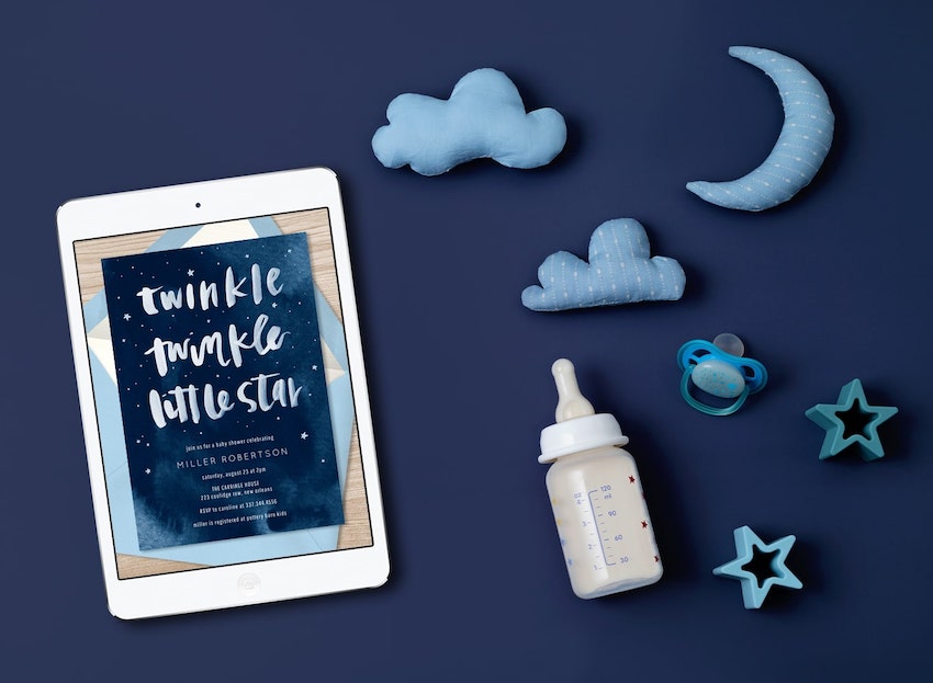 Complete your Twinkle Twinkle Little Star party with matching invites that will have guests over the moon in anticipation of the big event. At Greenvelope, you’ll find dozens of invites to match this party theme. Each design is customizable so you can make it your own. Here are some of our favorite Twinkle Twinkle Little Star baby shower invitations to choose from.