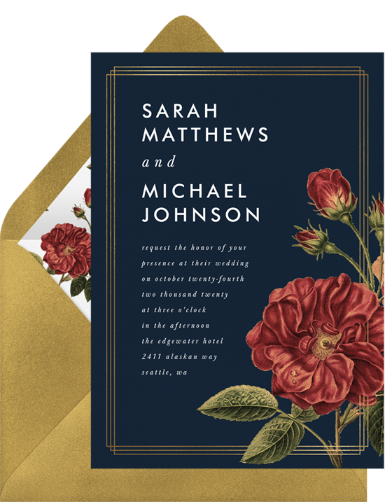 Customize practically any floral card with a hilarious poem. This Red Rose Invitation features the perfect layout for your faux love letter. Start with the typical, “Roses are red, violets are blue,” and write your own joke from there. A quick google search reveals options ranging from sweet to R-rated. The choice is yours.